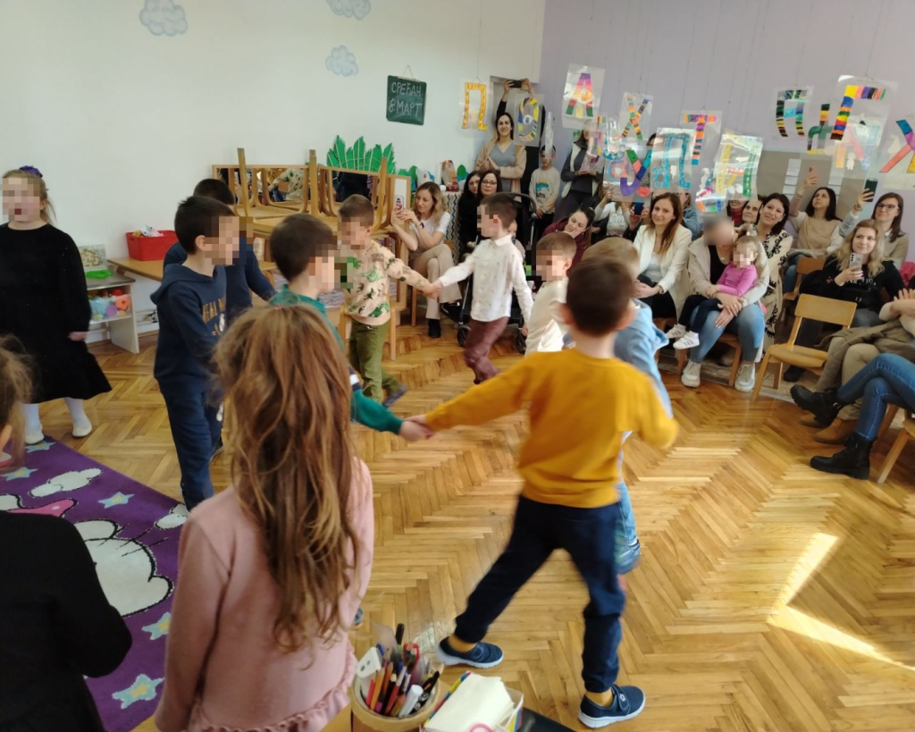 Деца млађе групе у оквиру пројекта „Љубав је свуда око нас“ су се посветила породици, најважнијој заједници из које потичемо. Певала су песмице о мамама, бојила хаљине за маме и правила честитке. Циљ је био да схвате значај породице, љубави и међусобног поштовања. Старија група је певала, израђивала пригодне поклоне и честитке, док су деца ППГ кроз приче које су писала у оквиру пројекта представила мамама своју љубав и поштовање.
