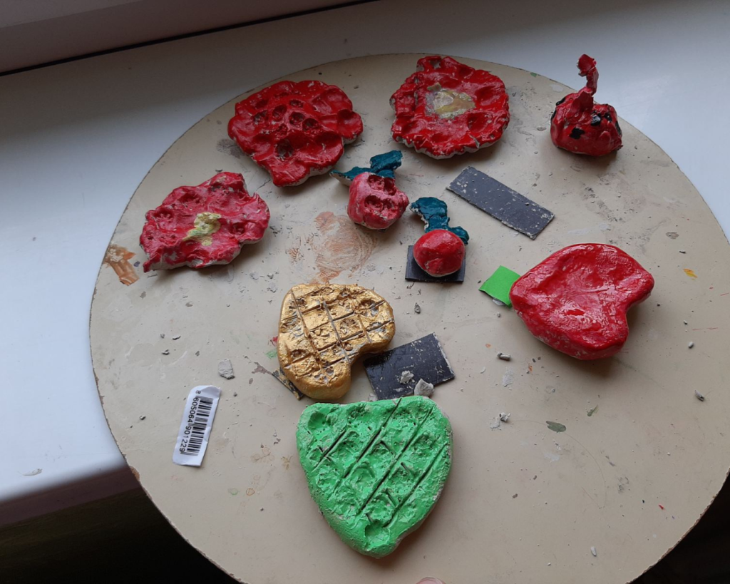 У Босуту су малишани били прави уметници – од школске глине су вајали магнете у облику срца, цвећа, јабука и бубамара, које су затим бојили лаком за нокте.